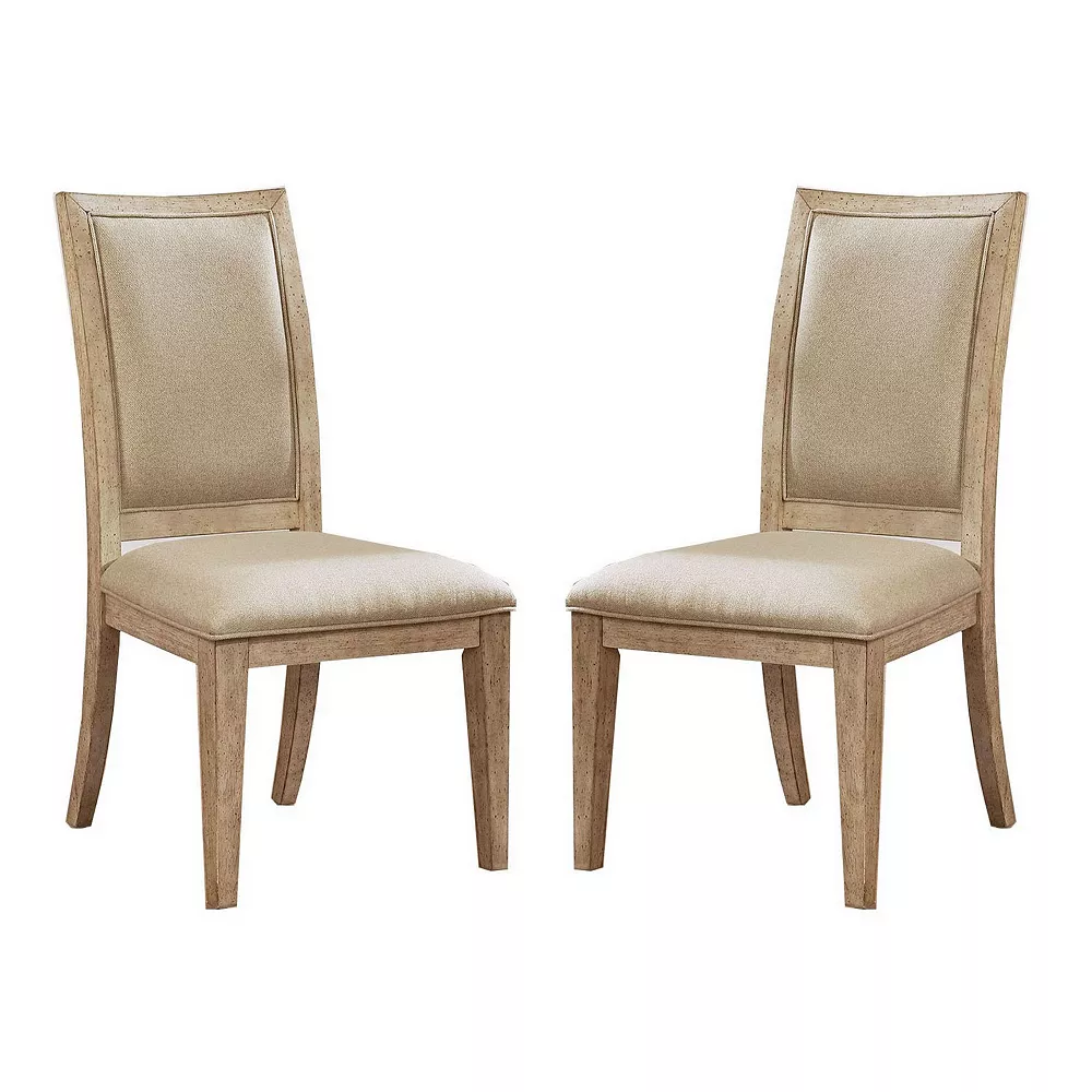 Enhance your sitting array with this subtly comfortable Side Chair, available in a set of 2. It is incorporated with a padded seat and back. Its natural tone with wood grain add up extravagance to the area. This unique side chair comes with a sturdy solid wood and veneer construction.