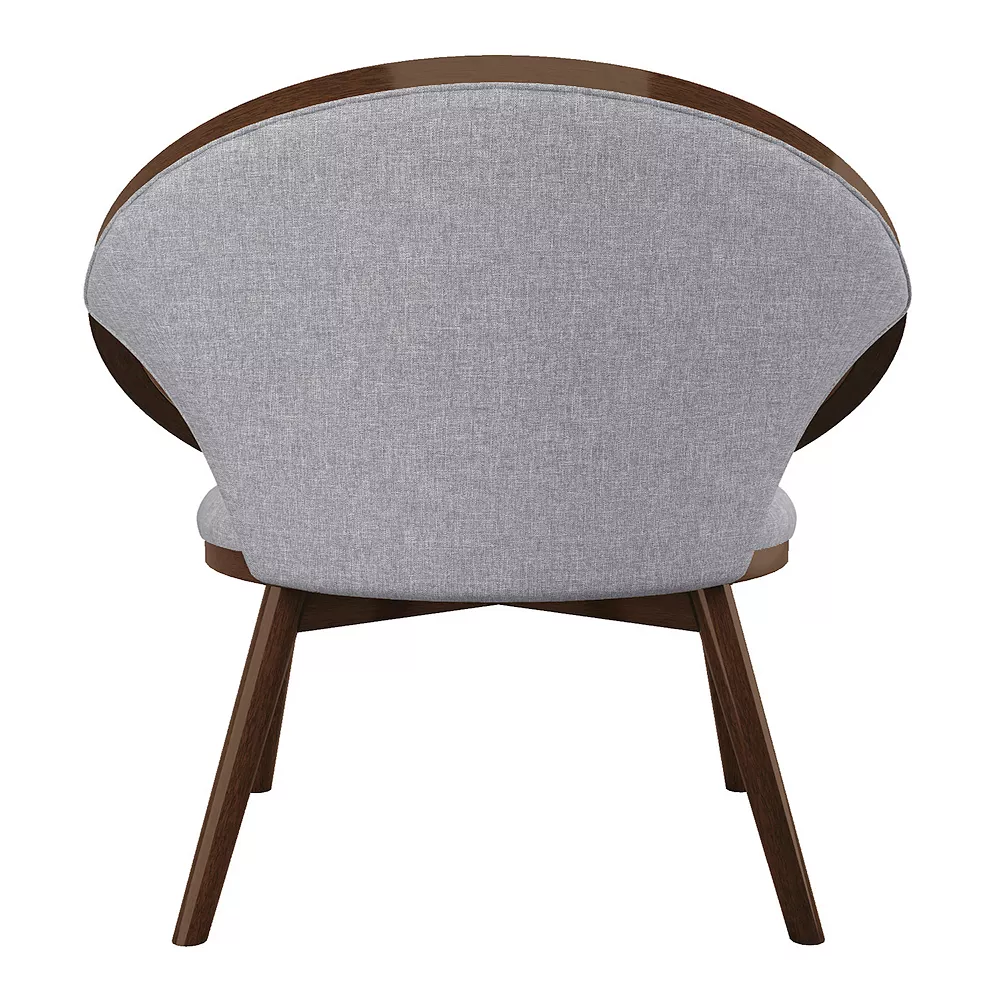Designed for your modern home, the Clair Collection is a homage to Mid Century design. Features tapered splayed legs that support its round unique frame and tweed herringbone fabric upholstery that lends a splash of color and texture. Engineered with Attached back and seat cushions providing maximum comfort and unique silhouette that will compliment your style. Solid rubberwood frame. Foam padded cushions. Tweed herringbone fabric upholstery. Attached back and seat cushions. Exposed wood frame with dark charcoal finish. Assembly required. Weight capacity: 300 lbs. Overall Dimensions: 26.5 in. L x 32 in. W x 33 in. H. Leg Color: Walnut. Tufted Cushions: No. Swivel: No. Seat Construction: MDF. Removable Cushions: No. Reversible Cushions: No. Removable Cushion Cover: No. Toss Pillows Included: No. Slipcovered: No. Nailhead Trim: No. Number of Chairs Included: 1. Base Style: Basic Four Leg. Leg Material: Solid Wood. Mattress Included: No. Cushion Construction: Foam. Foam Density: 1.4 lbs./cu. ft. and under. Joinery: Corner-block-reinforced. Main Wood Joinery Method: Dowell Joint. Kiln-Dried Wood: No. Cleaning Code: S: Spot clean with dry, solvent-based cleaner. Cushion Ticking: No. Treatment: No. Seat Height – Floor to Seat: 17.5. Seat Width – Side to Side: 23.5. Seat Depth – Front to Back: 19.5. Back Height – Seat to Top of Back: 15.5. Minimum Door Width – Side to Side: 20. Pattern: Solid.