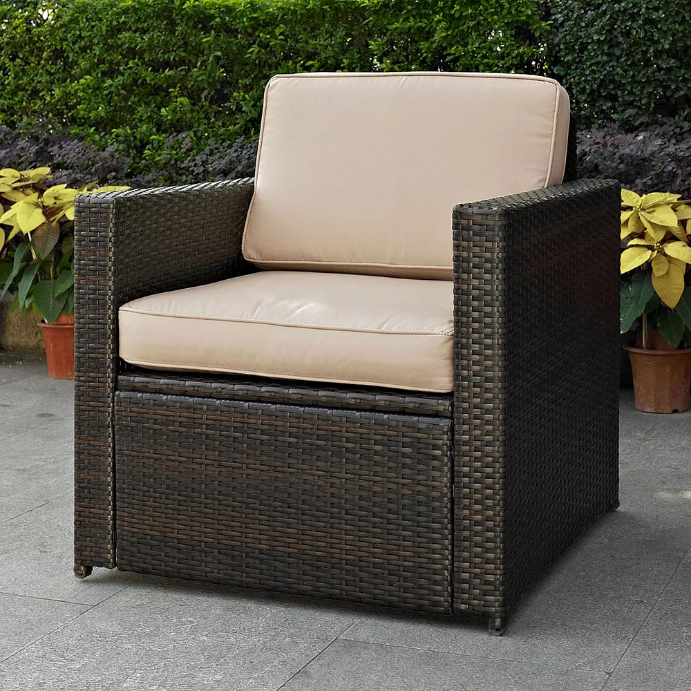 You’ll love to lounge around on this cozy patio arm chair from Crosley Furniture.