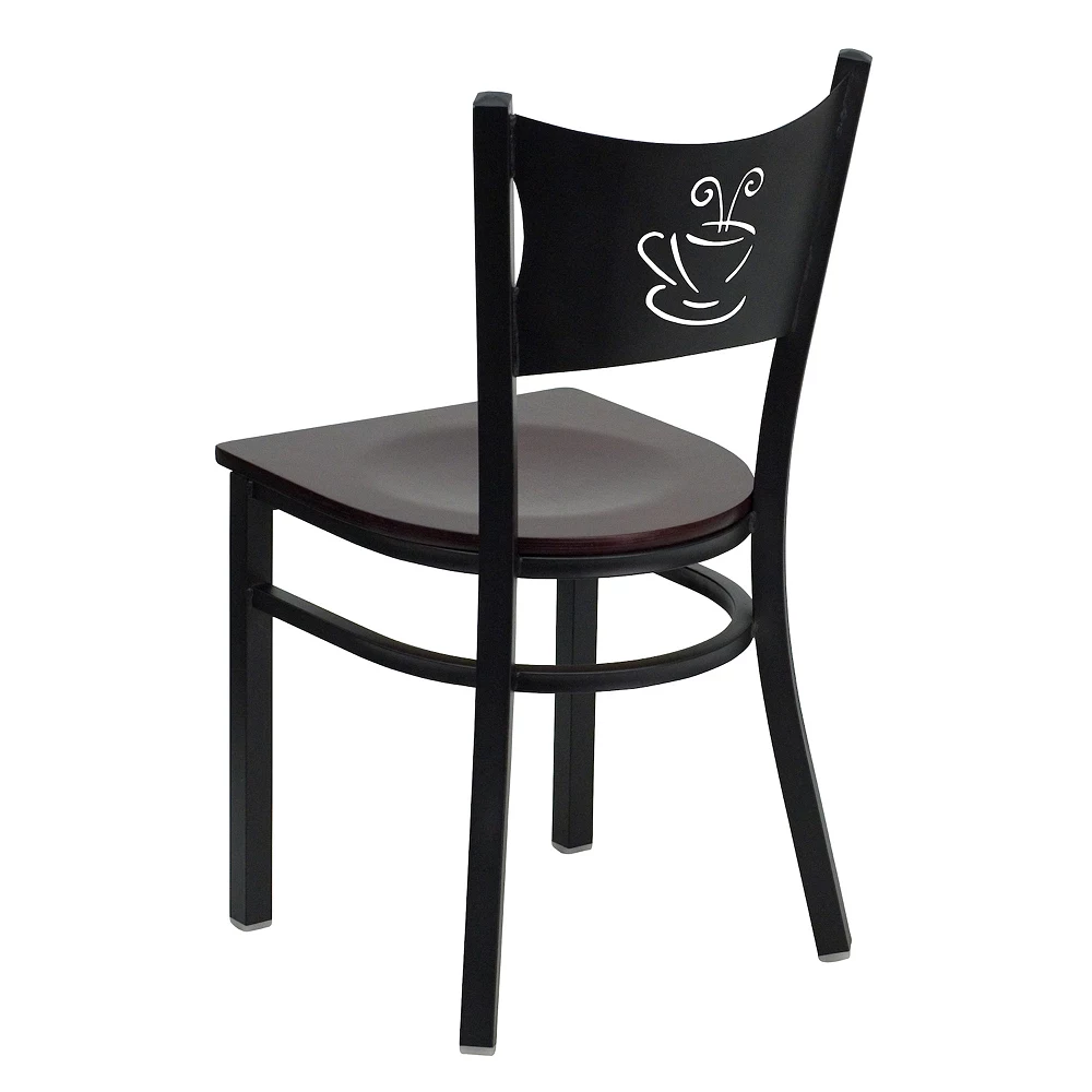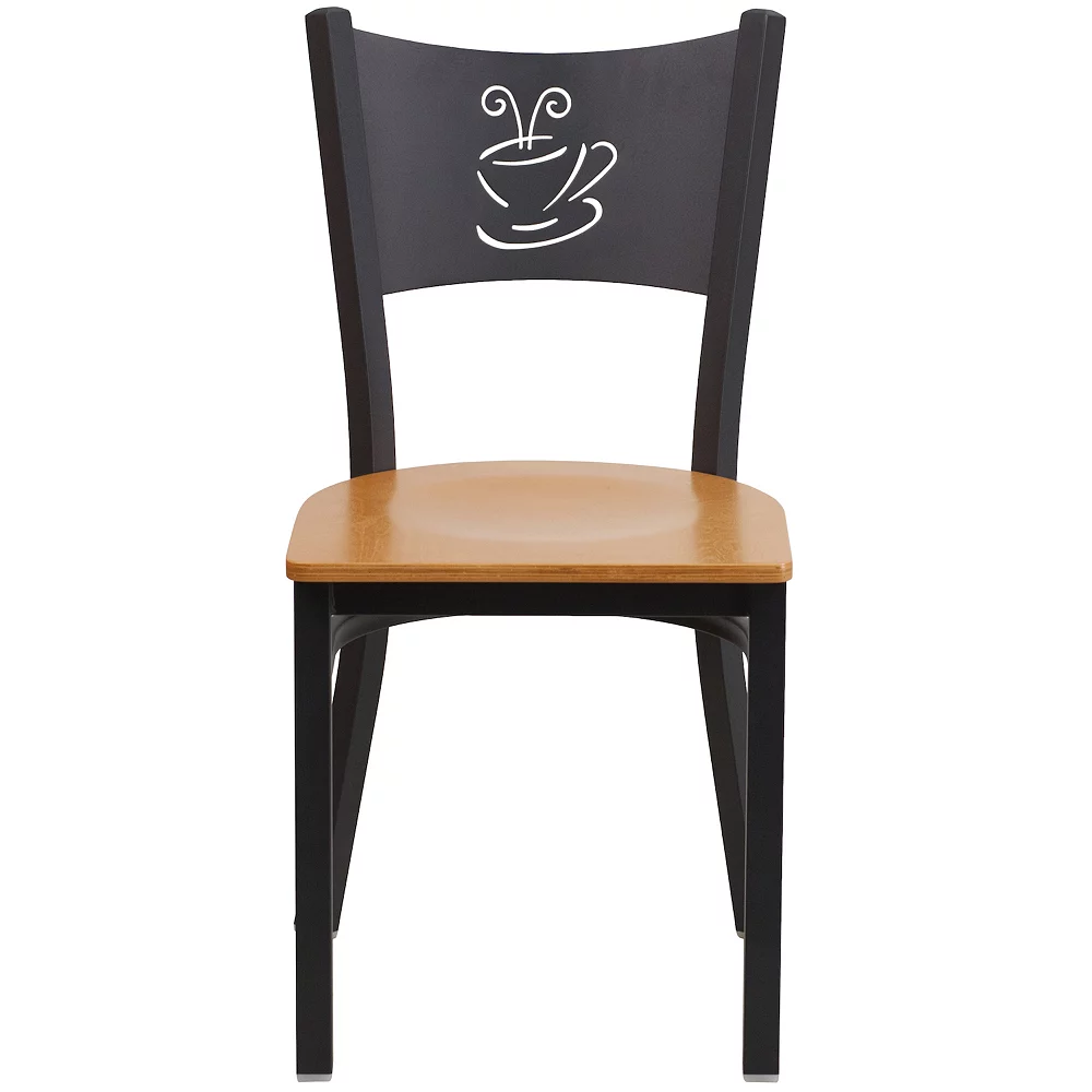 Be a trendsetter and offer guests a seating option that is a little different but a lot of charming. This appealing metal restaurant chair boasts a coffee back design and natural finish wood seat that gives this piece something extra and is a nice change of pace. The durable frame is stabilized with welded joint assembly and curved support bar that does well in high traffic establishments. This metal chair is easy to clean, which is an important aspect when it comes to a business. This chair was designed to withstand the daily rigors in the hospitality industry, but will also provide a chic, engaging look to your home. Floor glides help protect your floors and ensure smooth gliding. The simple and lightweight design of this chair is perfect for both residential or commercial grade use.