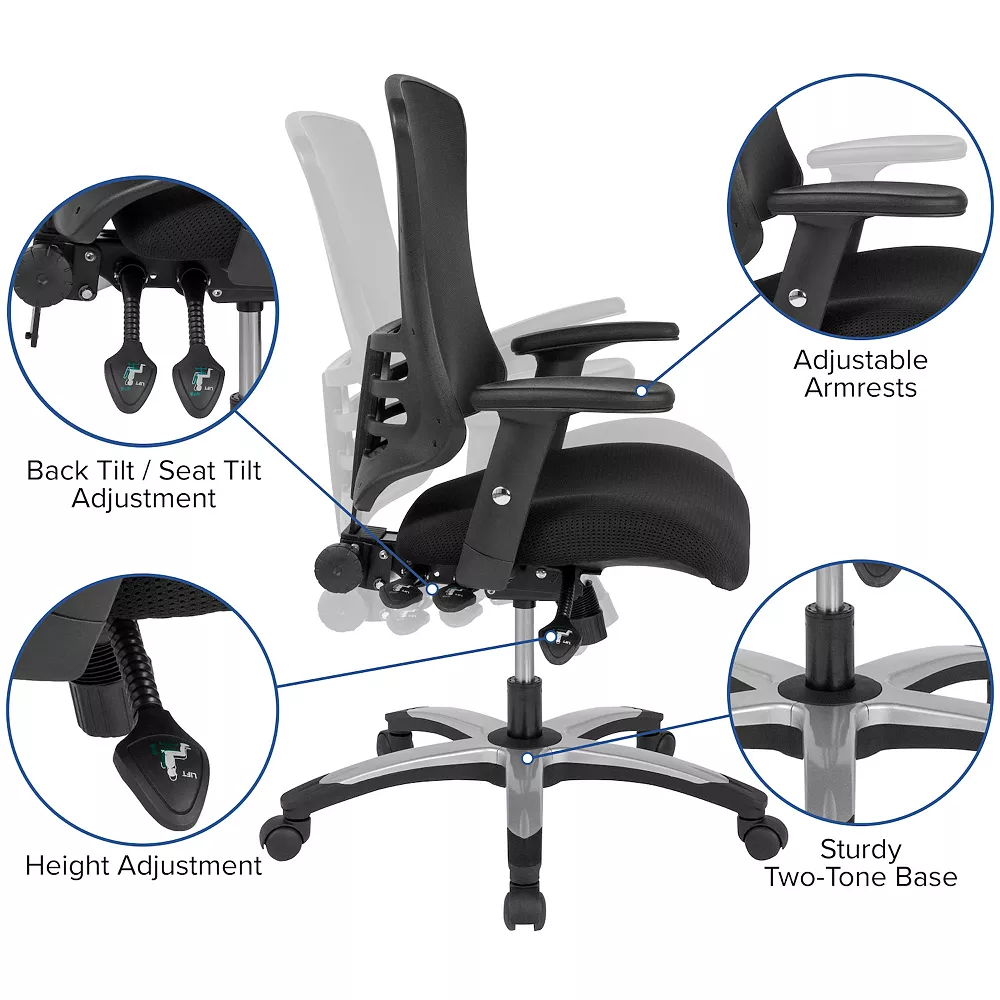 Emma+Oliver Emma And Oliver High Back Black Mesh Multifunction Ergonomic Office Chair With Molded Foam Seat