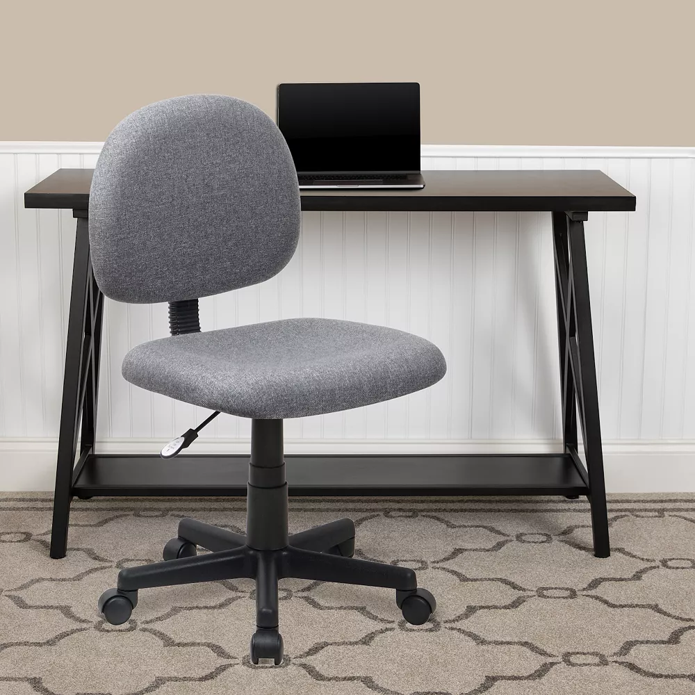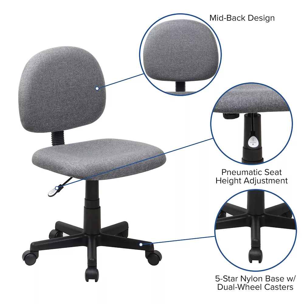 This practical task chair can serve multiple purposes. This chair is ideal for the more active user who is constantly leaning forward. This chair was designed to support the mid-to-upper back region. The contoured seat dissipates pressure points for greater comfort. The waterfall front seat edge removes pressure from the lower legs and improves circulation. Chair easily swivels 360 degrees to get the maximum use of your workspace without strain. The pneumatic adjustment lever will allow you to easily adjust the seat to your desired height. This computer chair will make a great option for your home or office space.
