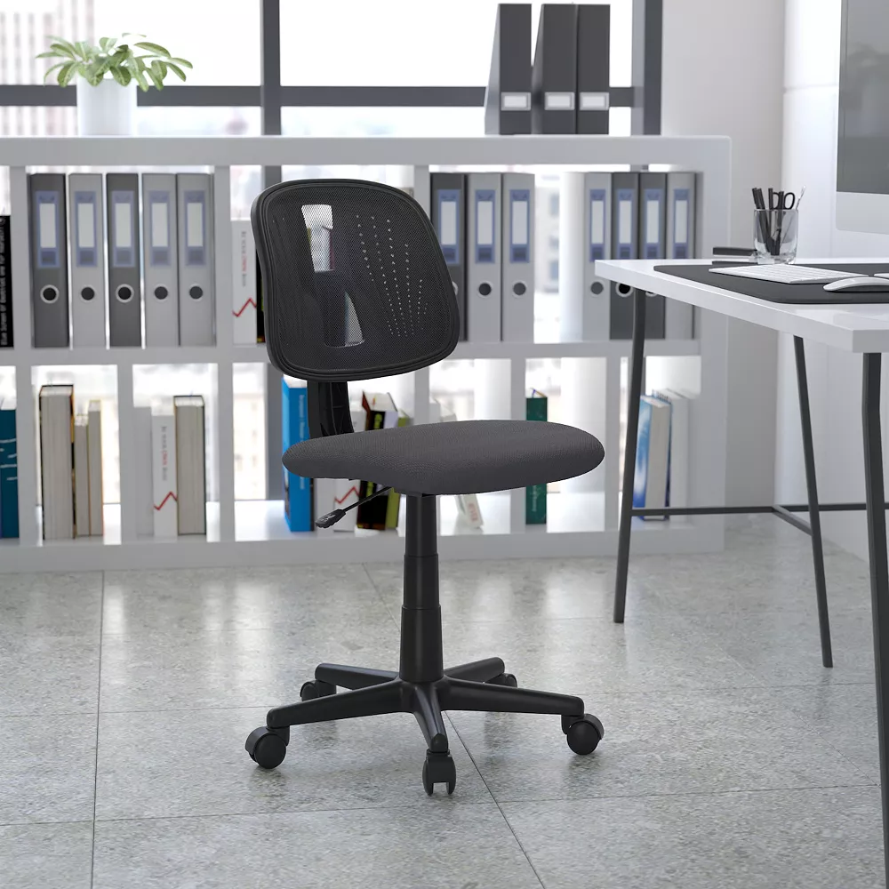 Tackle the workday with any challenge that comes your way on this snazzy desk chair. The cooling designer back features mesh material for exceptional airflow combined with gentle curved lumbar support. Our Fundamental Task Chair will make an impressive footprint in your office with its cutting edge structure. The innovate back pivots backward while leaning back for a comfortable resting period. Adjust your office desk chair with the pneumatic adjustment lever that controls the height of your seat. Effectively switch between tasks with 360 degrees of swivel motion. Providing exceptional value for today’s modern office, our Fundamental Seating will afford you the opportunity to purchase seating for students and small businesses.