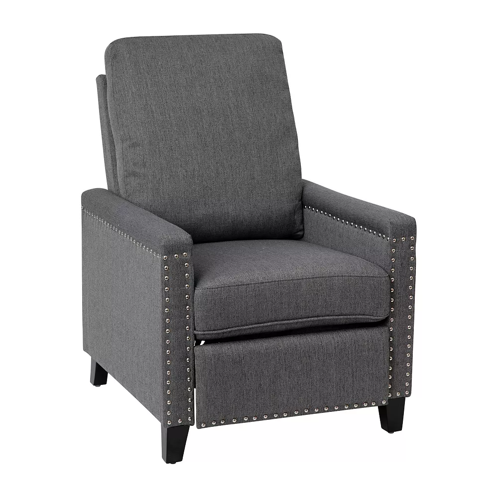 - Push-back transitional style reclining chair with nail accent trim