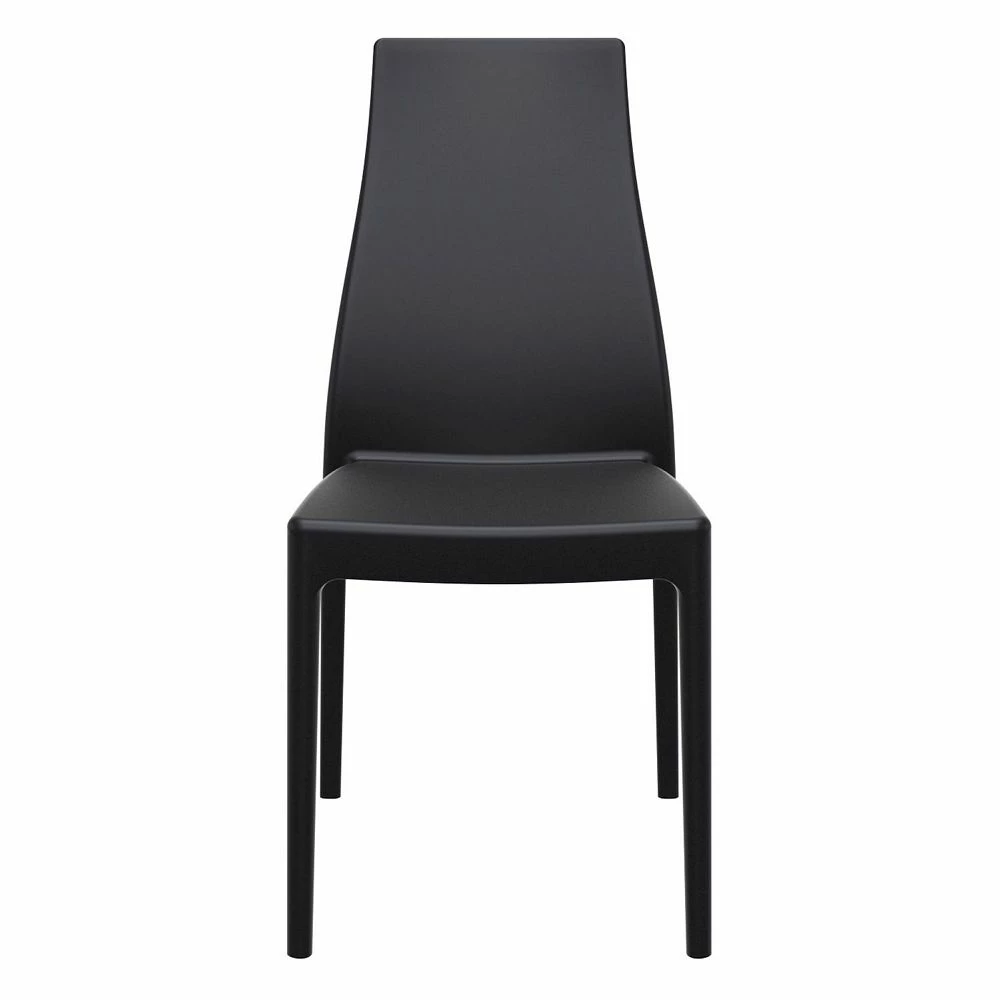 These high-back dining chairs in black will add an unmatched sophistication to your modern interiors and immediate exteriors. Combining an elegant design with practicality they promise high durability with their commercial-grade resin composition and gas injection molded legs. They can be easily cleaned and you can stack them for storage. These sleek high-back seats will definitely compliment your space and style. Material(s): polypropylene/resin