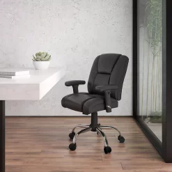 Emma+Oliver Emma And Oliver 400 Lb. Big & Tall Black LeatherSoft Task Adjustable Arm Ergonomic Office Chair