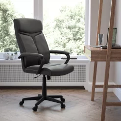 Emma+Oliver Emma And Oliver High Back Black Glove Vinyl Executive Swivel Office Chair With Arms