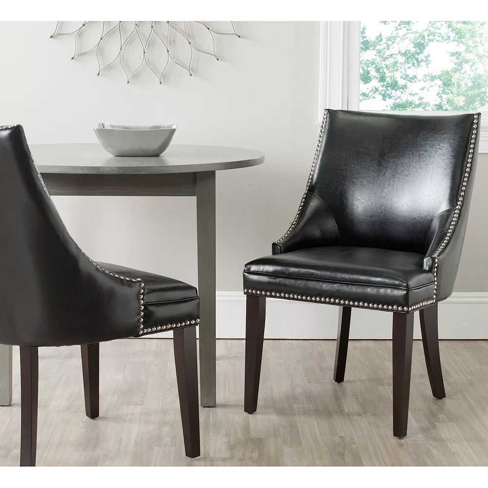 With its gently turned legs and nailhead trim, this Safavieh Afton chair set is the epitomy of contemporary style. In flat cream/espresso finish.