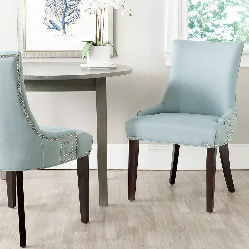Intricate details and gently turned legs give this Safavieh Gretchen side chair set stunning style. In light blue/espresso finish.