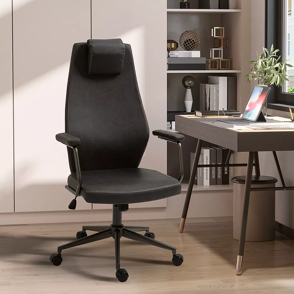 - ERGONOMIC DESIGN: The ergonomic high-backrest line design with thick sponge padding seat of this office chair is covered by faux leather providing an extra comfortable experience